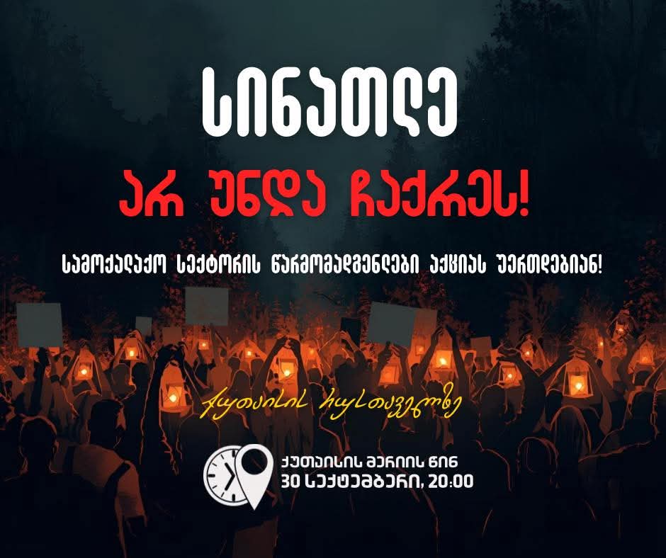 მარში ხვალ, 30 სექტემბერს, 20:00 საათზე, ქუთაისის მერიის წინ არის დაგეგმილი.