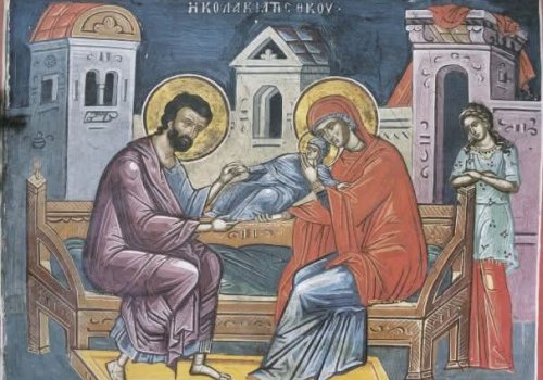 ღვთისმოშიშ ცოლ-ქმარს შვილი ხანდაზმულ ასაკში შეეძინათ. მათ აღთქმა დადეს, თუ ღმერთი შვილს მისცემდათ, ახალშობილს ტაძარში მსახურებისთვის უფალს მიუძღვნიდნენ. უფალმა იოაკიმესა და ანას ლოცვა-ვედრება შეისმინა. მთავარანგელოზმა გაბრიელმა ამცნო ანას, რომ იგი მუცლად-იღებდა. ყოვლადწმინდა ღვთისმშობელი საკუთარ სახლში სამი წელი იზრდებოდა.