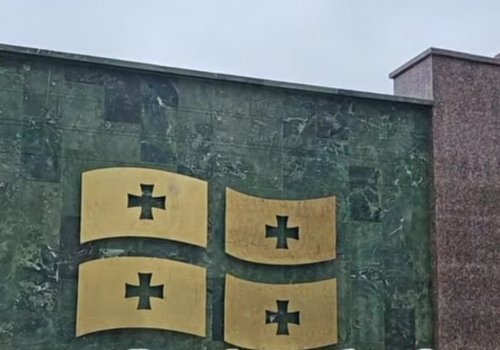 In საზოგადოებაქუთაისში , 2008 წლის აგვისტოს ომის მემორიალზე გაკეთებული წარწერა- ,,8 აგვისტოს ომში დაღუპულ გმირთა მემორიალი,,…