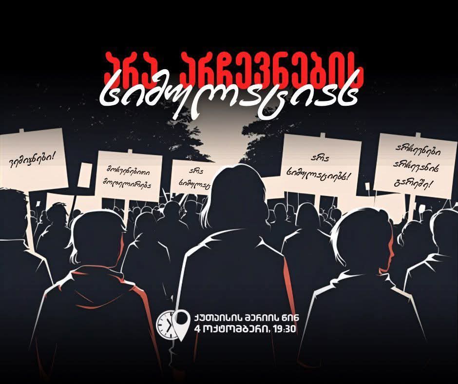 ხვალ, 4 ოქტომბერს, ადგილობრივი თვითმმართველობის არჩევნების დღეს, თბილისში მასშტაბური აქცია იგეგმება. აქციას ქუთაისიდანაც შეუერთდებიან.